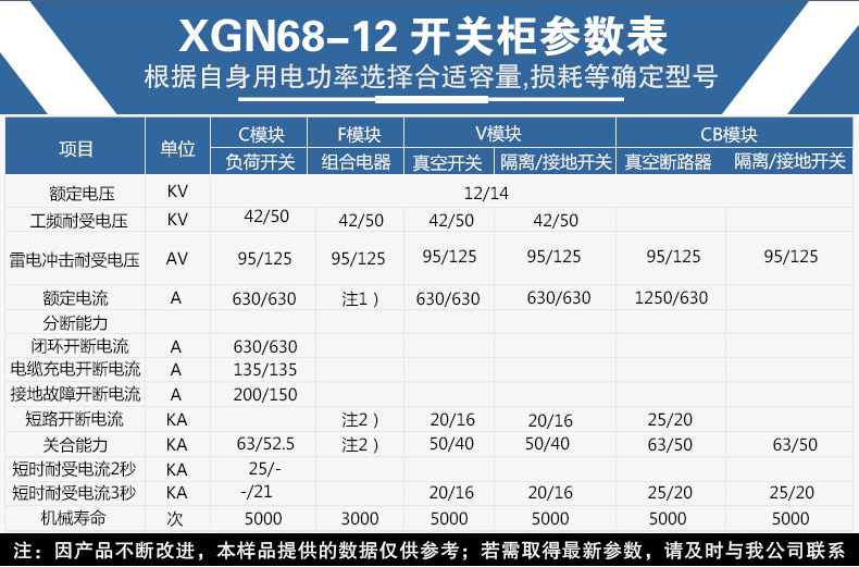 XGN68-12型高壓真空開關柜,系三相交流額定電壓12kV、頻率為50Hz的戶內供、配電設備,用于環(huán)網供電或雙電源輻射供電系統(tǒng)中,作為電能的控制和保護裝置,亦可裝入箱式變電站中。該設備主回路所選用的主要元件為專門為該開關柜開發(fā)的ZN100-12型真空斷路器、FZN-12型真空負荷開關、FZNR-12型負荷開關-熔斷器組合電器等。該產品以其可靠的性能、簡單的操作、小巧的外觀深受廣大用戶的歡迎。