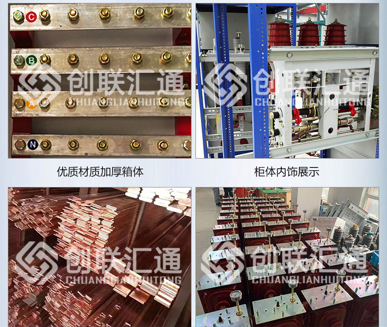 用于環(huán)網供電或雙電源輻射供電系統(tǒng)中,作為電能的控制和保護裝置,亦可裝入箱式變電站中。該設備主回路所選用的主要元件為專門為該開關柜開發(fā)的ZN100-12型真空斷路器、FZN-12型真空負荷開關、FZNR-12型負荷開關-熔斷器組合電器等。