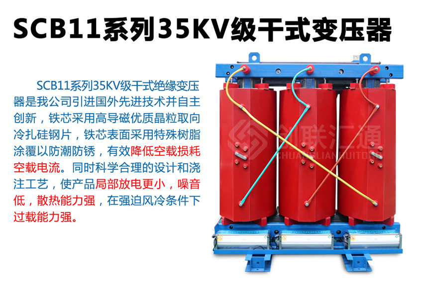 SC(B)11系列35KV環(huán)氧樹脂干式變壓器新一代節(jié)能產(chǎn)品,該系列配電變壓器產(chǎn)品使用在變壓器電壓直接從35KV電網(wǎng)轉(zhuǎn)變?yōu)?00V配電的特殊場合,可減少10KV輸變電環(huán)節(jié),使運(yùn)行維護(hù)費(fèi)用明顯降低。35KV級無勵磁調(diào)壓配電變壓器產(chǎn)品通過了家級鑒定,確立為高新技術(shù)產(chǎn)品。 產(chǎn)品具有損耗低、阻燃性好、承受短路能力強(qiáng)、體積小、噪音低、耐雷電沖擊性能好,溫度分布均勻等優(yōu)點(diǎn),而且由于環(huán)氧樹脂干式變壓器不使用變壓器油,不會產(chǎn)生油污染,無爆炸危險。產(chǎn)品可作為配電變壓器廣泛適用于電力系統(tǒng)城網(wǎng)改造,也可用于高層建筑、機(jī)場、車站、港口、地鐵待對消防、環(huán)保有嚴(yán)格、特殊要求的多種場合。