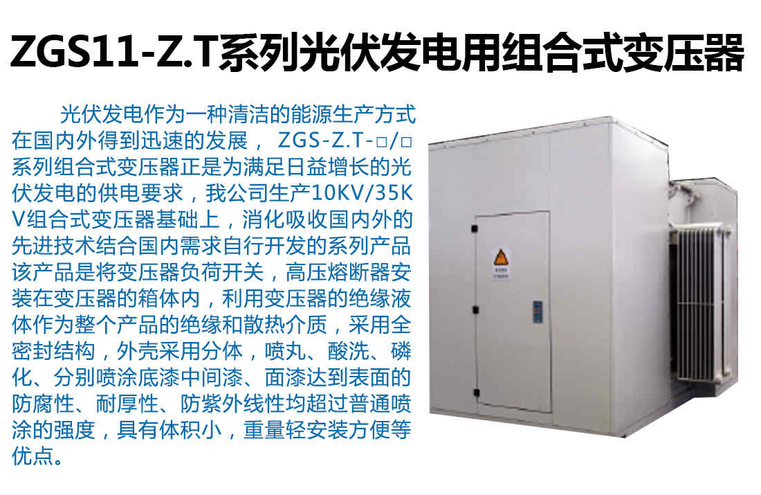 首頁>>產(chǎn)品中心>>箱式變電站ZGS11-Z.T系列光伏發(fā)電用組合式變壓器廠家