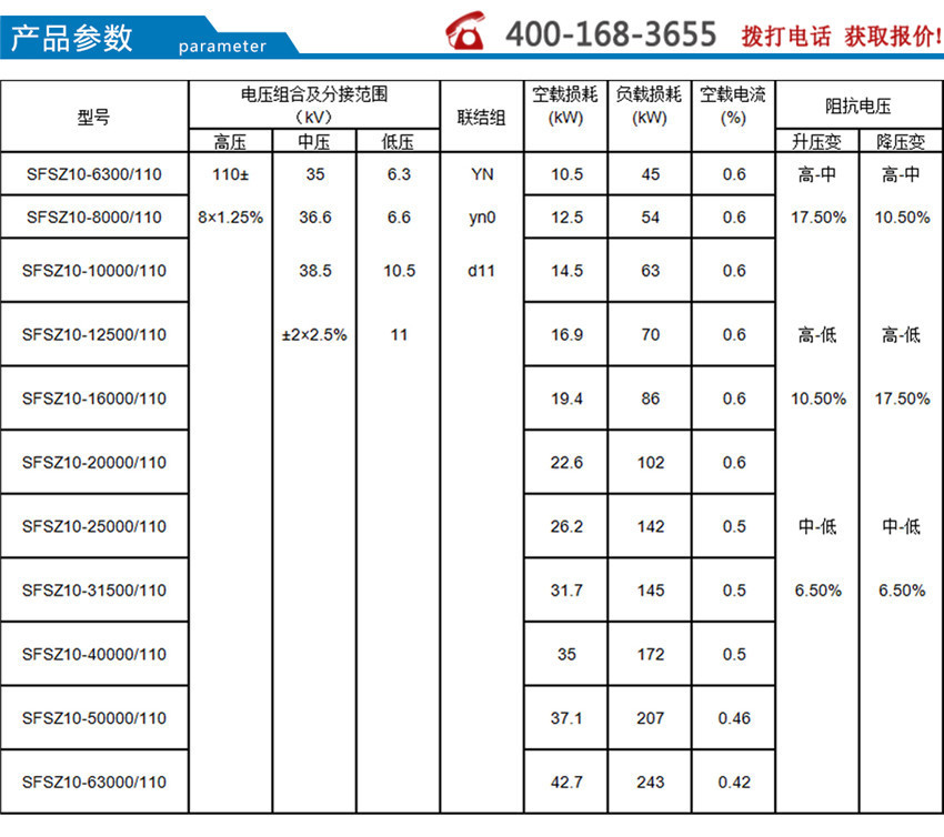 S(FSZ)10系列110-220kV有載調壓電力變壓器